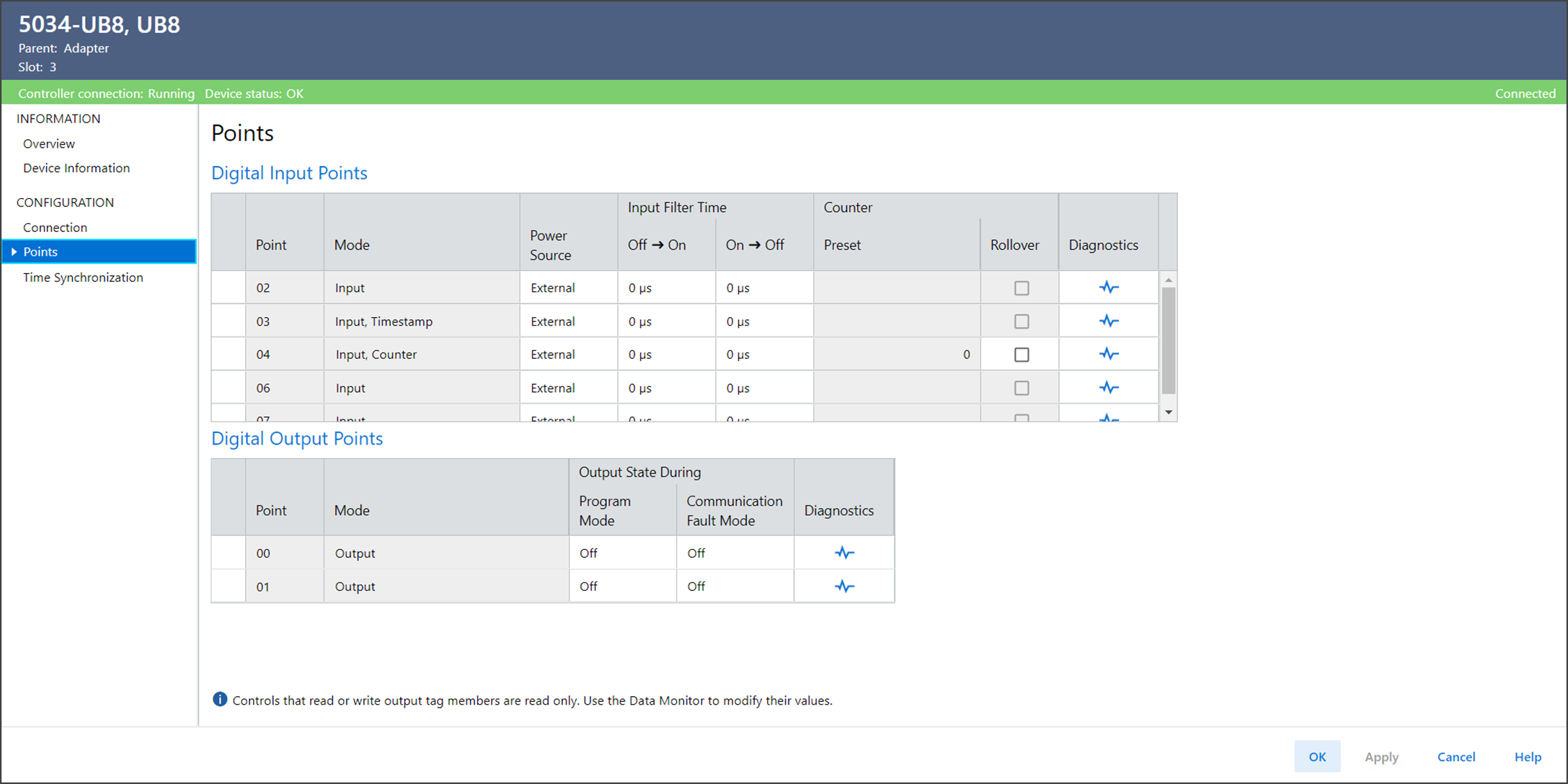 要查看 Ptxx 诊断,在 Points 或 Ptxx 视图中选择 Diagnostics。