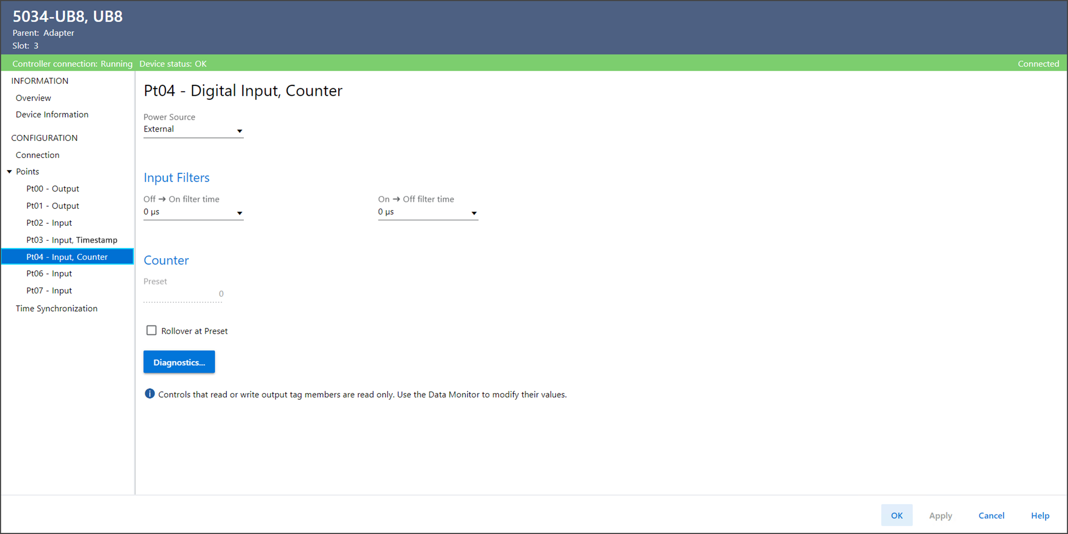 使用 Ptxx – Digital Input, Counter 查看或配置设备的点。