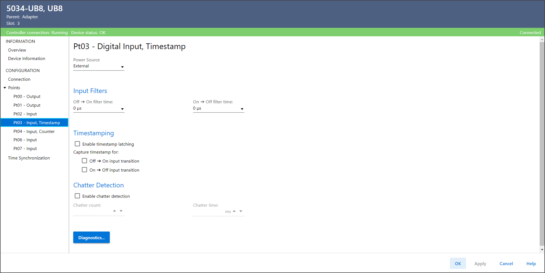 使用 Ptxx – Digital Input, Timestamp 查看或配置设备的点。
