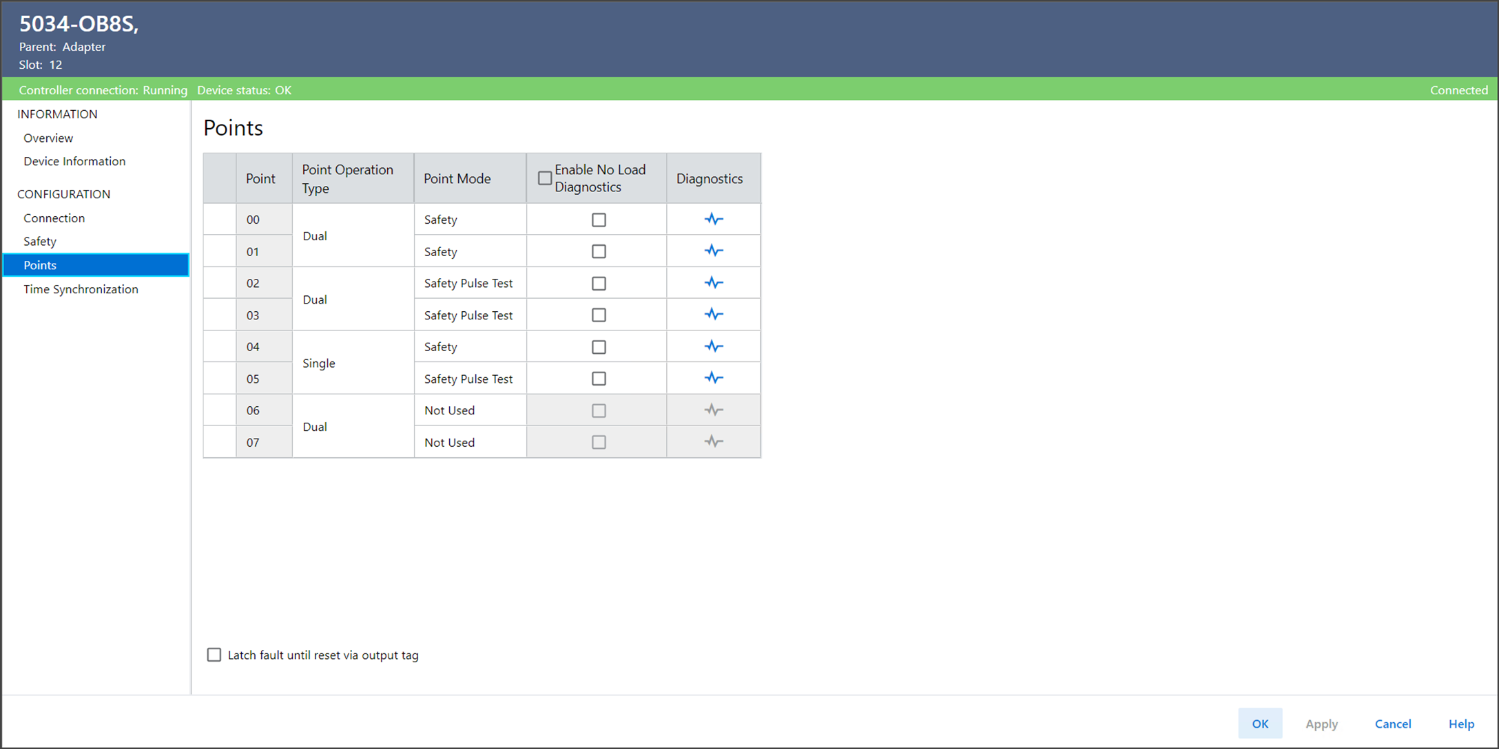 要查看 Ptxx diagnostics,在 Points 视图中选择 Diagnostics。