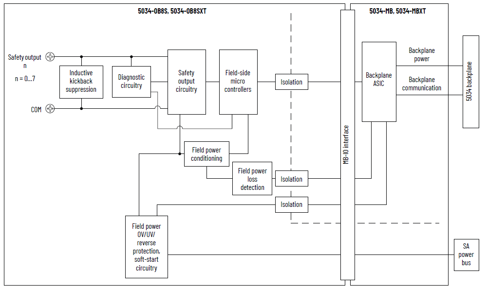 5034-OB8S 和 5034-OB8SXT 功能块图