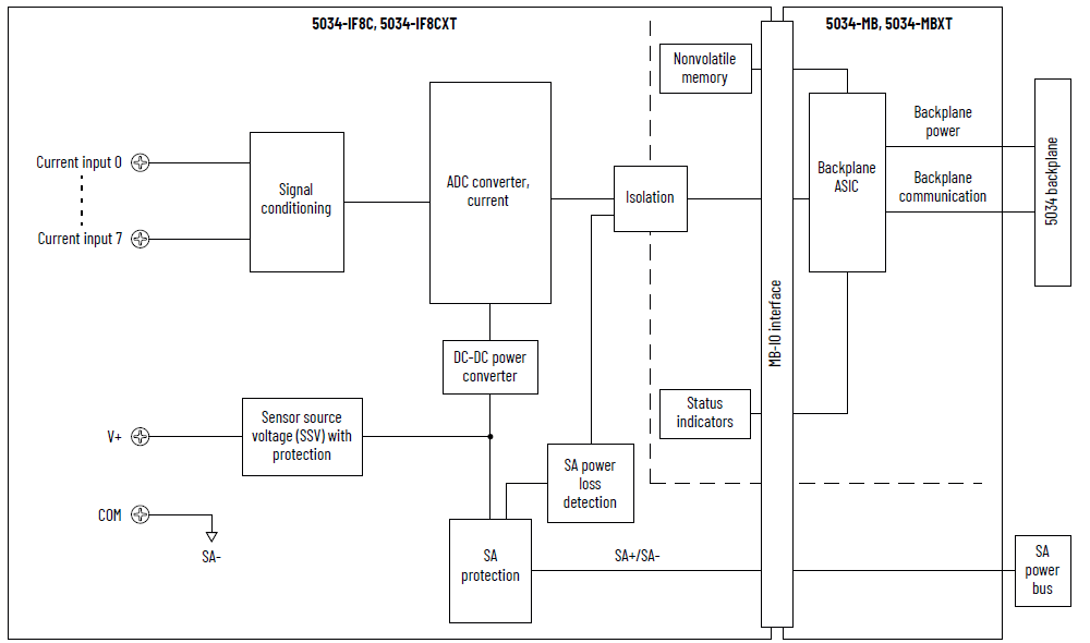 5034-IF8C 和 5034-IF8CXT 功能块图