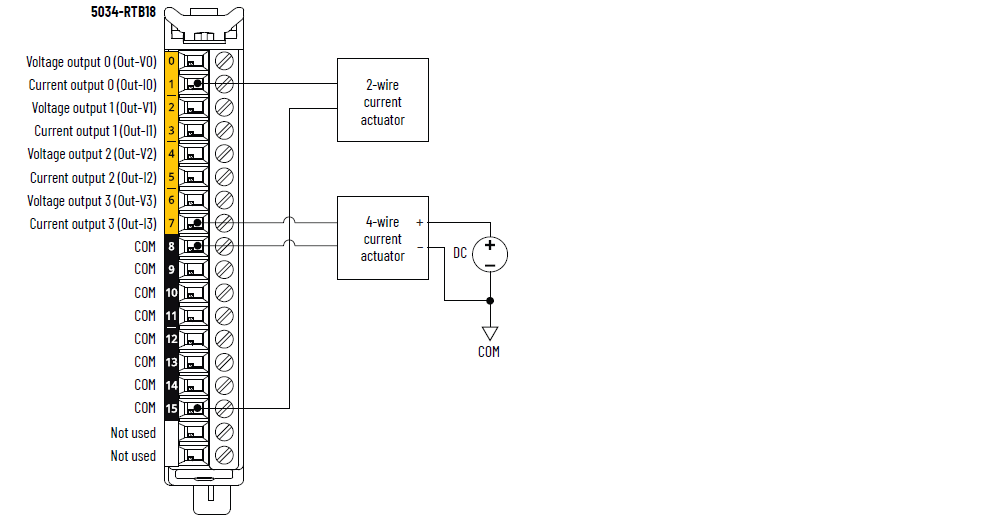 5034-OF4 和 5034-OF4XT 接线图 – 电流模式