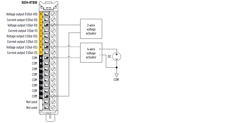5034-OF4 和 5034-OF4XT 接线图 – 电压模式