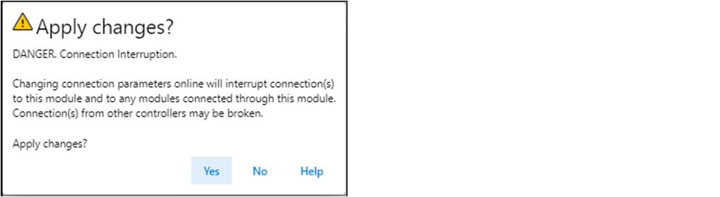 - 在 Module Properties 对话框上,选择 OK。重要提示:如果试图更改本页的 IP 地址,则将显示下列警报: