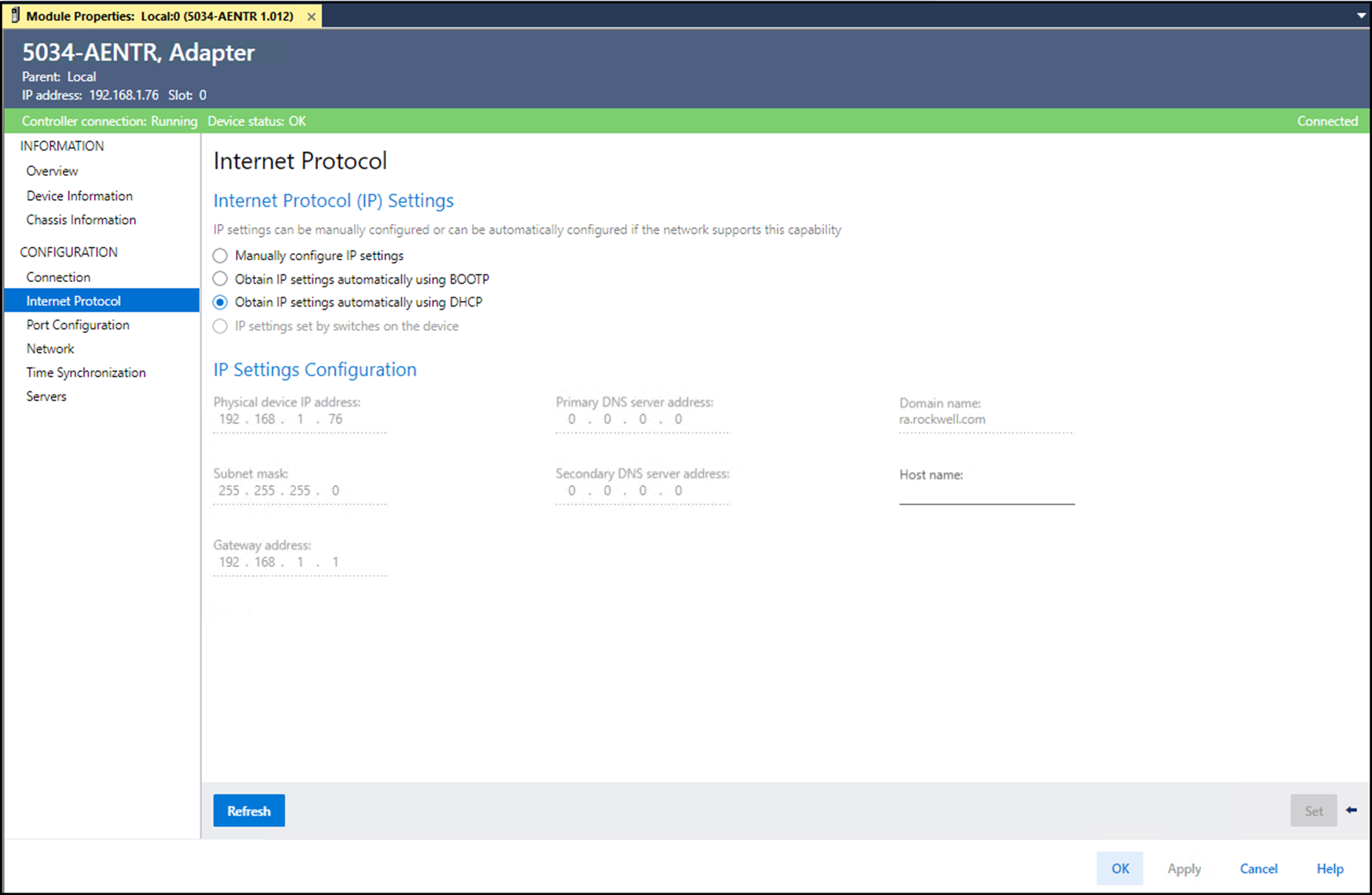 - 从 Module Properties 视图中,选择 Internet Protocol。如有需要,可设置下列 Internet Protocol 属性: