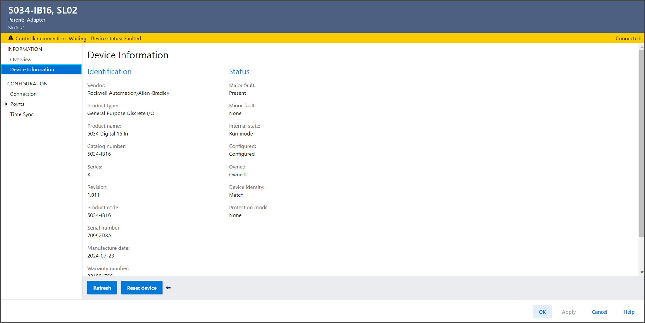 如果存在 Time Sync 故障,请转到 Device Diagnostics 对话框,检查时间同步状态和主时钟标识。